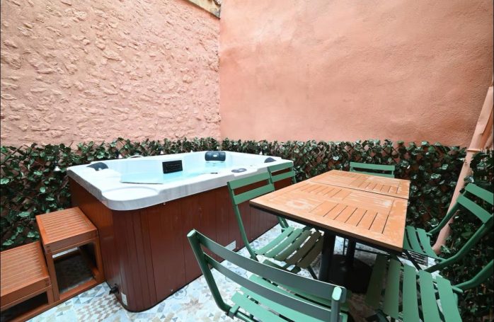 Una espectacular terraza equipada con barbacoa y jacuzzi, perfecta para relajarse y disfrutar de la vista.